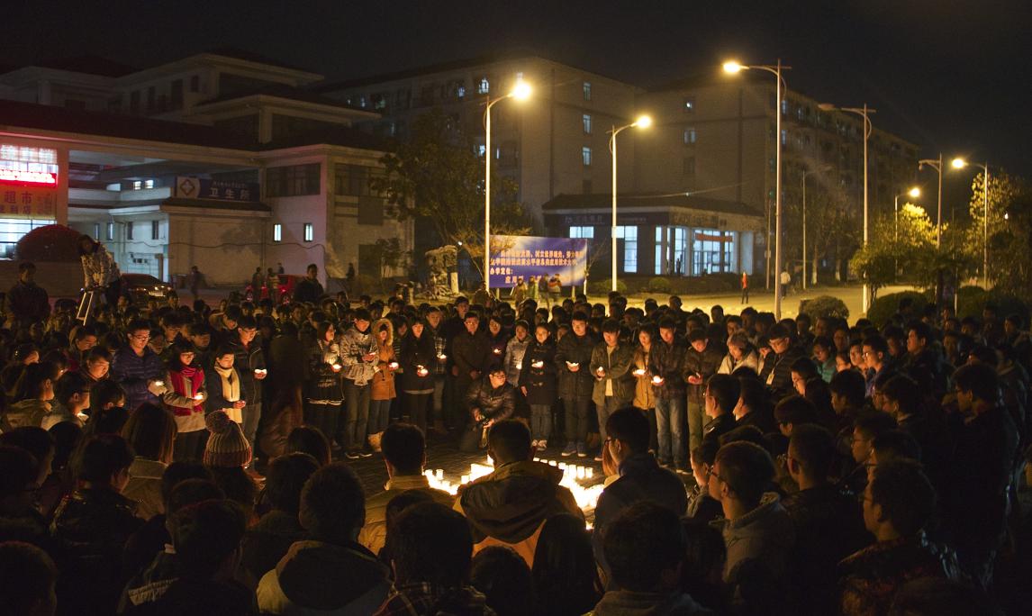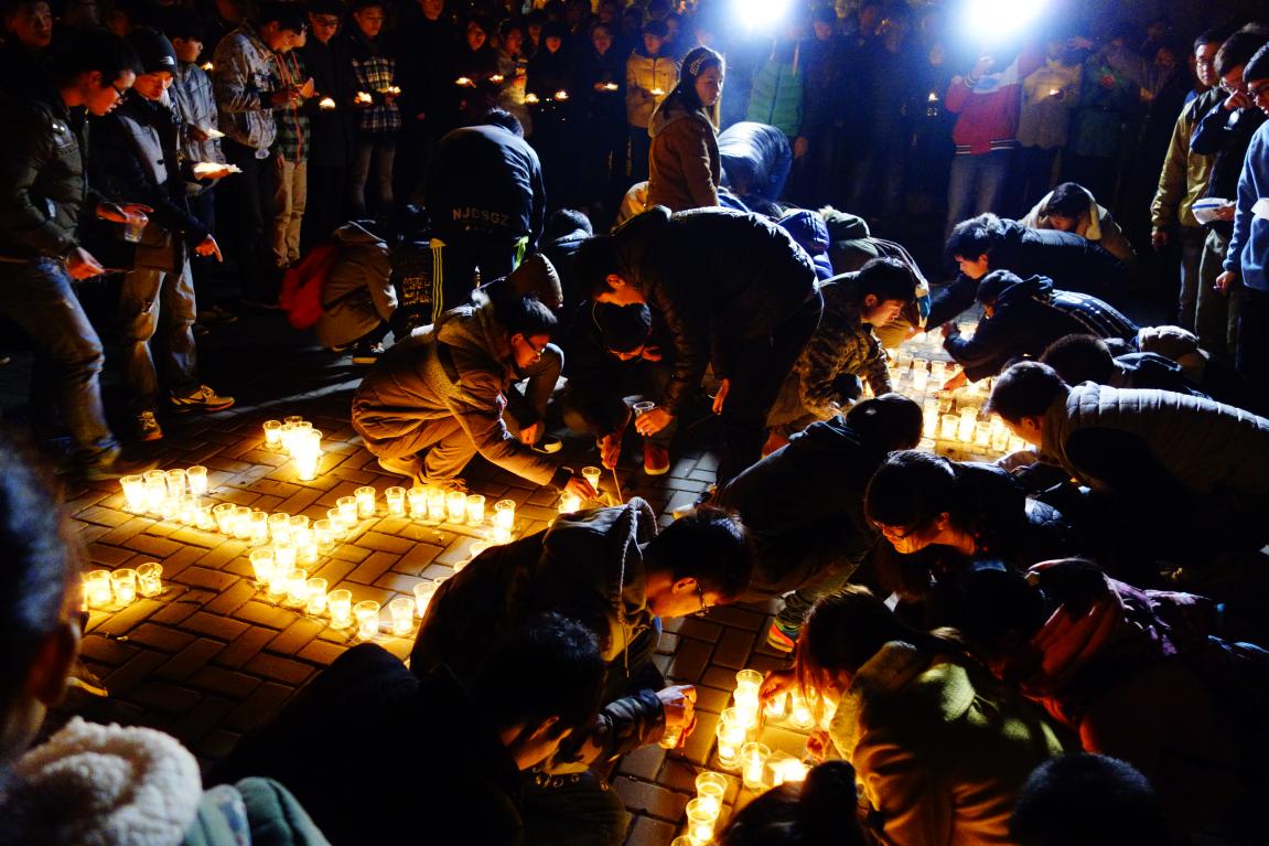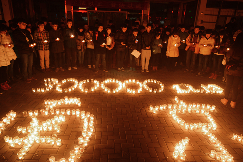 2014年12月13日晚,必赢官网学生在学院广场举行了“南京大屠杀遇难同胞烛光祭”活动。学生会成员用蜡烛在地面上摆出“300000 12.13 南京”的字样,500只红烛依次被点亮,整个祭奠活动气氛庄严肃穆。必赢官网学生会等学生团体成员及自愿而来的学生共200多人参加了此次活动。