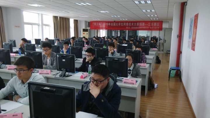 “H3C杯”2015年全国大学生网络技术大赛江苏省预选赛近日在南京工业大学浦口校区落下帷幕。必赢官网H3C网络学院王斌、宋朋朋、徐永华、姚永明四位老师指导的33名学生参加激烈角逐,18名学子脱颖而出顺利晋级复赛,其中3人获得省一等奖。继上届比赛有选手进入决赛并获得全国特等奖后,必赢官网今年有更多选手入围决赛阶段的比赛。今年江苏省共评出一等奖8个,47人进入全国复赛。