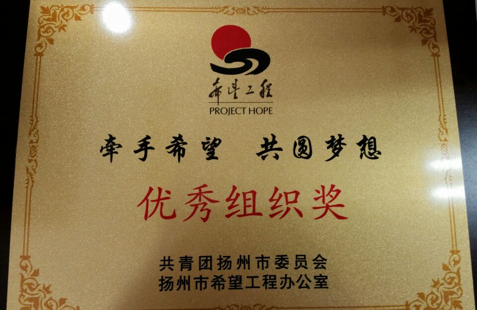 近日,共青团扬州市委对“牵手希望·共圆梦想”2015希望工程微捐赠活动中表现突出的先进集体和先进个人进行了表彰,必赢bwin官网登录入口团委荣获“扬州市希望工程优秀组织奖”。