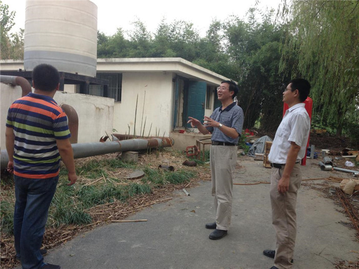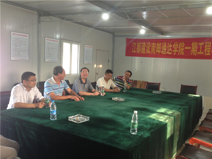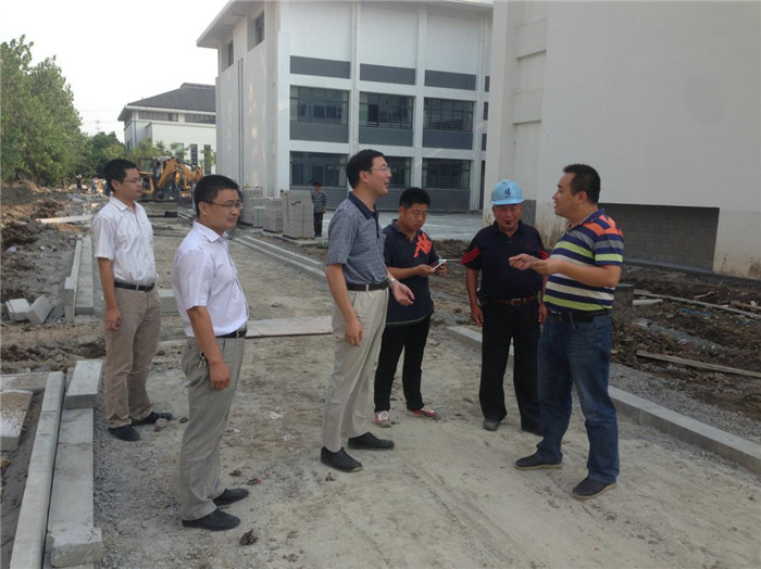 8月14日,院党委书记兼副院长戴兆骏、办公室主任葛超、后勤管理处副处长姚正军、副处长周玉松等冒着36℃的高温,实地检查了学院新建教学楼、实验楼、教师公寓、学生公寓等一期建设项目,以及运动场塑胶跑道维修改造、教工食堂施工、吴洲路污水管网改造、消防泵房改造、二期工程拆迁等工地现场,对在高温下作业的工人们给予关心与慰问。