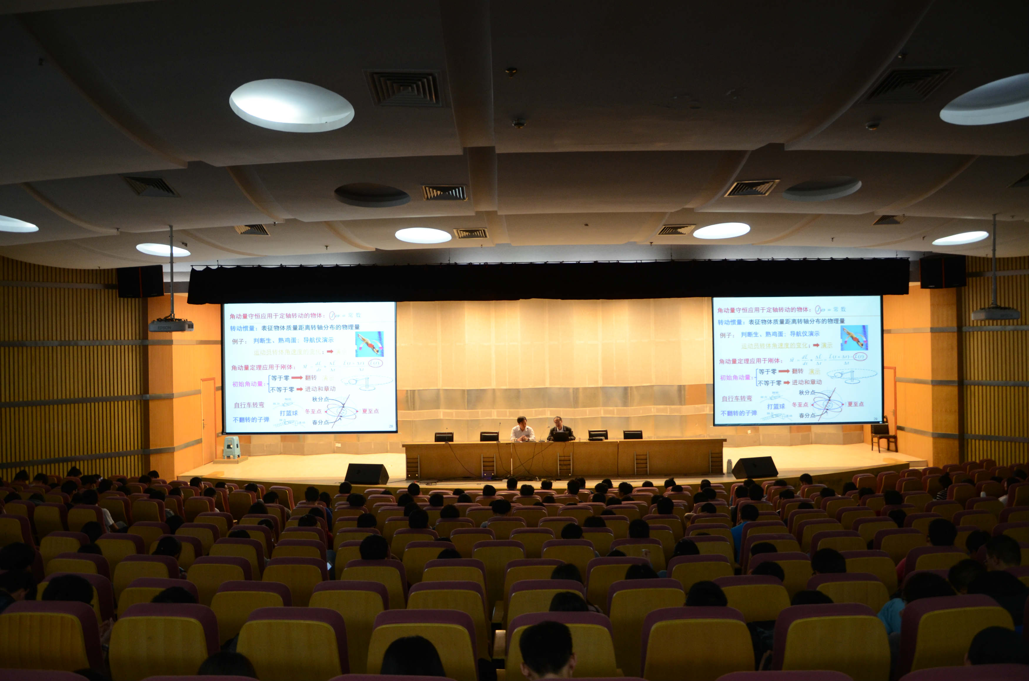 张汉壮教授用幽默风趣的语言,围绕“物理都有啥、物理有啥用”进行了讲解。他以图解的方式诠释了物理学的研究领域和学科范畴,使现场同学了解了“物理都有啥”。又从"了解我们的自然宇宙"、"倡导人类的科学活动"、"引导科学技术的进步"、"培养人的逻辑思维,探索与创新的能力"四个层面讲解了“物理有啥用”。张教授风趣、质朴的语言和贴近生活的实例分析赢得了现场同学们的阵阵掌声。