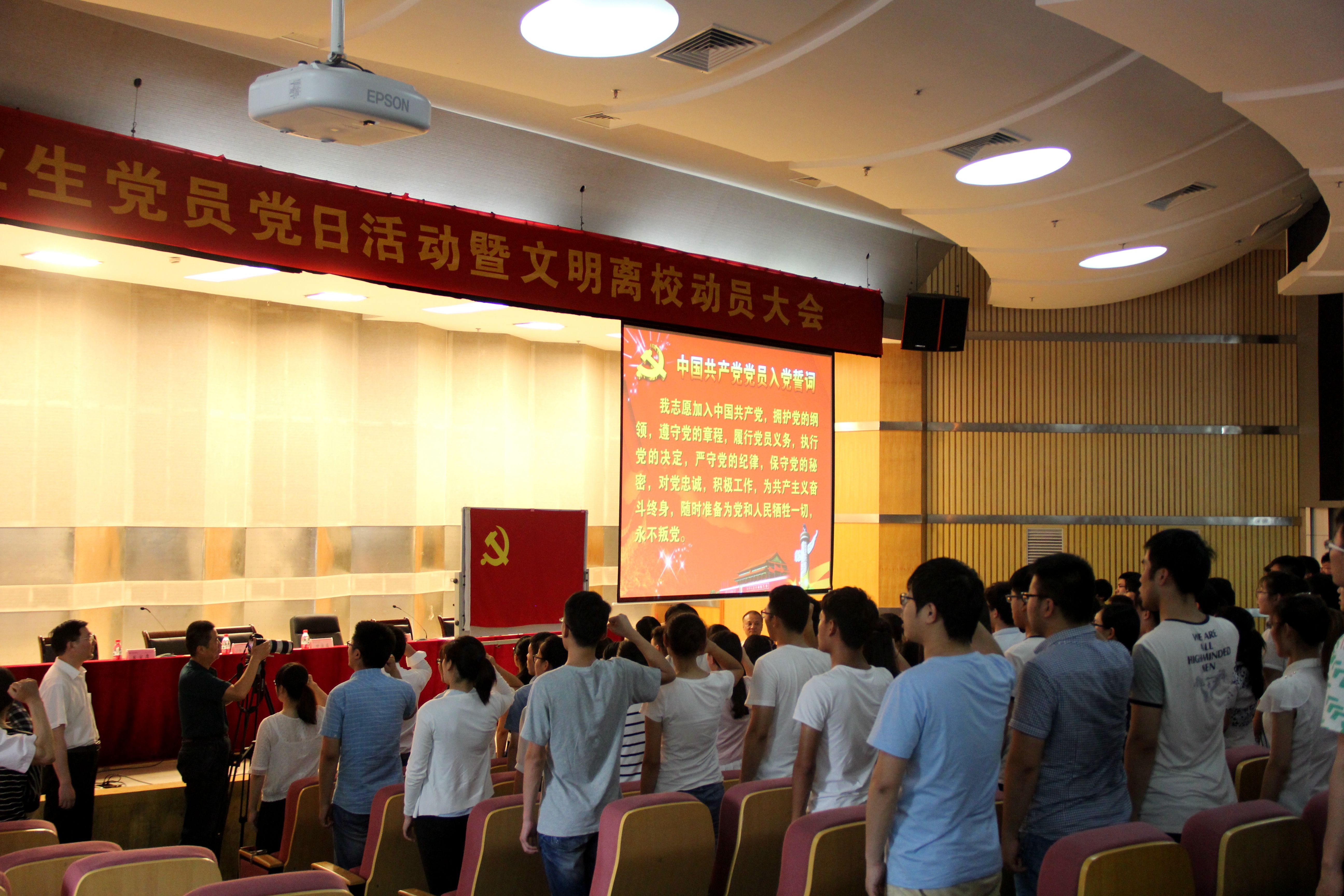 6月19日下午,学院党委在行政楼报告厅举行了2016届毕业生党员党日活动暨文明离校动员大会。152名2016届毕业生党员济济一堂,院党委委员、各毕业生党支部书记和学工处、团委等部门负责人出席大会。会议由院党委副书记王立辉同志主持。