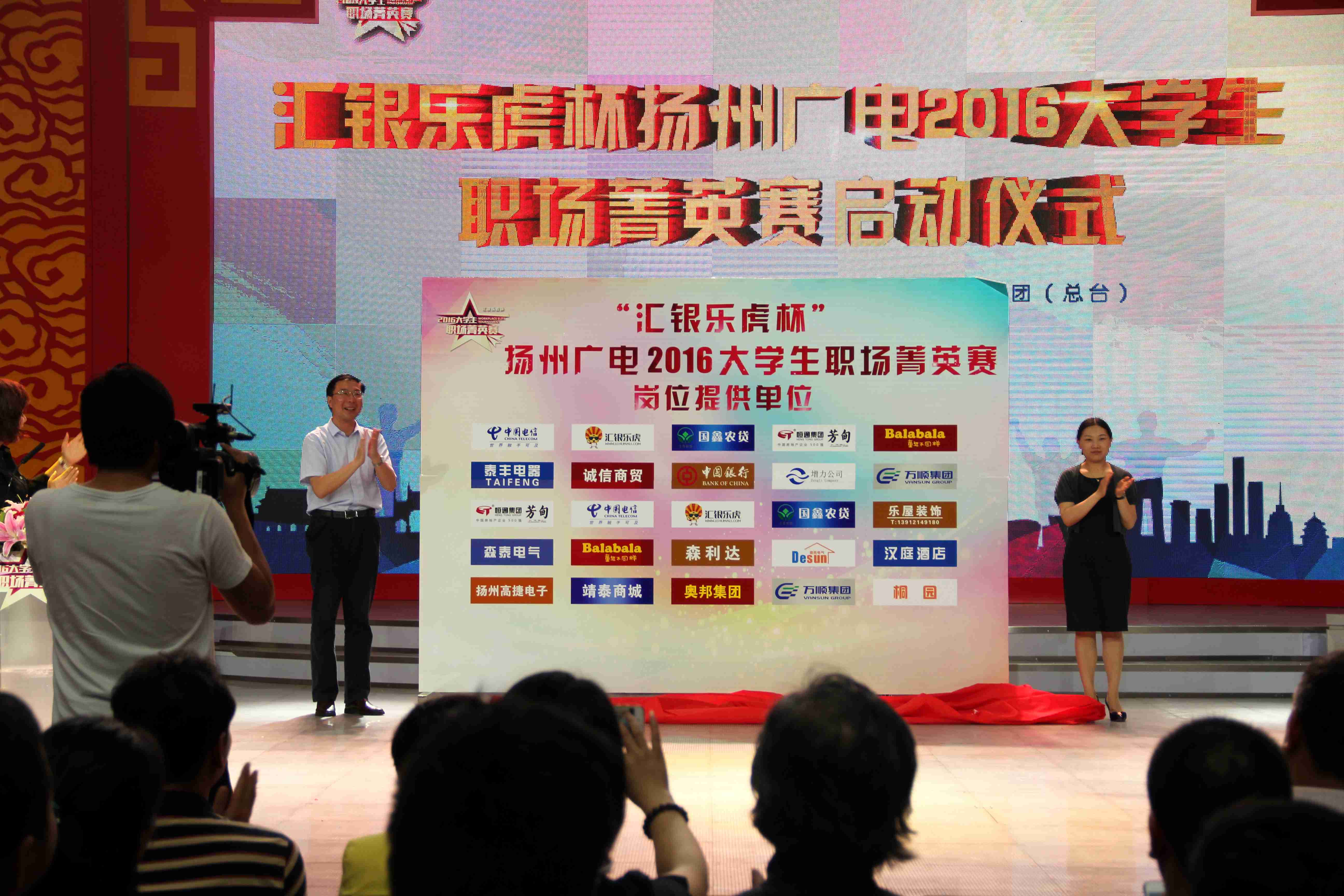 6月23日上午,在扬州广电总台大厅举行了“汇银乐虎杯”扬州广电2016大学生职场菁英赛启动仪式。必赢官网党委书记戴兆骏、团委书记解厚荣以及30名学生代表参加了此次活动。