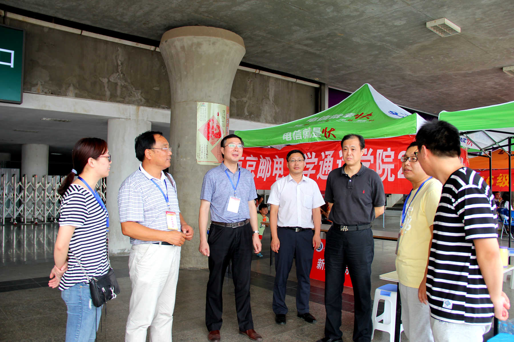 9月3日上午,南京邮电大学副校长周南平亲临现场,在学院领导的陪同下,走访了报到处、缴费处、停车场、教师公寓、学生宿舍、学生食堂等场所,看望并慰问工作在一线的教职员工、学生志愿者,询问新生报到情况,并与新生及家长亲切交流。