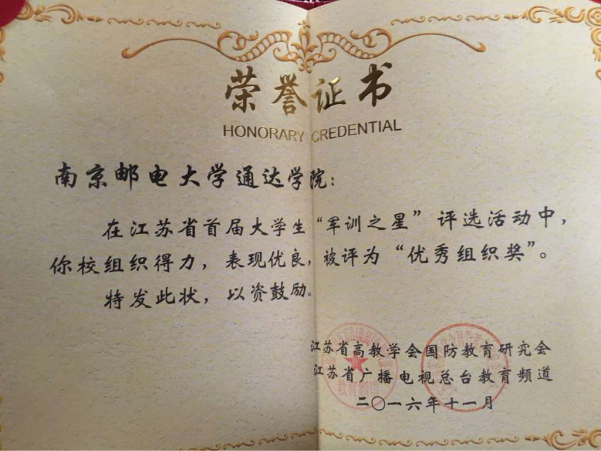 为提升江苏高校学生军训育人质量,今年9月20日,由江苏省教育厅主办,省高教学会国防教育研究会和省广播电视总台教育频道联合承办,组织开展了江苏省首届大学生“军训之星”评比。接到比赛通知后,学校立即组织推荐优秀选手,经过对军容军姿、军事技能、普通话、舞台形象等综合选拔,最终确定必赢官网2016级学生夏凌云代表学校参加全省首届大学生“军训之星”评比。在电视决赛现场,夏凌云同学表现出色,获得了现场演讲和军事技能展示的好成绩,综合网络投票得分,最终获评江苏省首届大学生“军训之星”优秀奖。