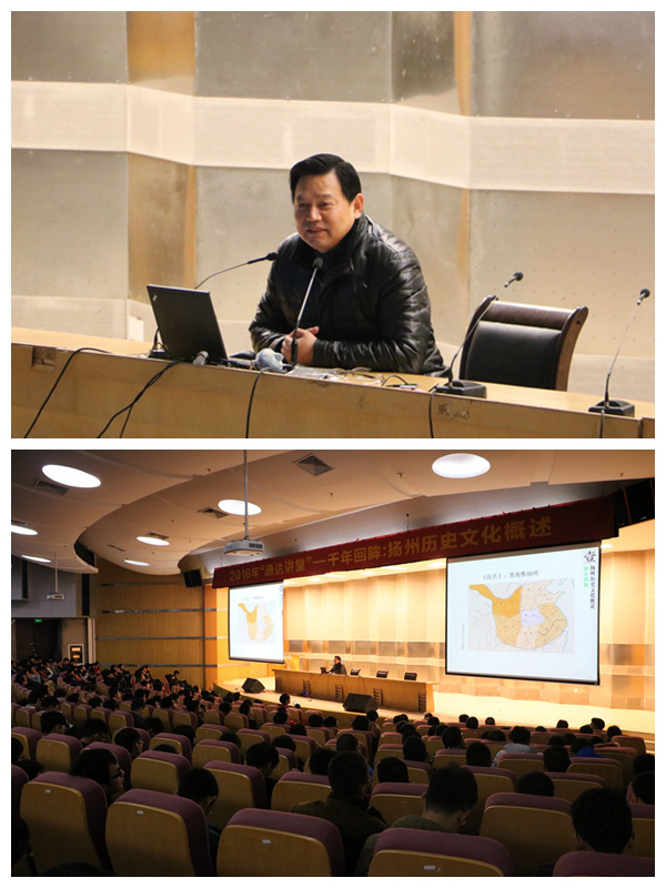 11月30日晚,扬州大学艺术学院原党委书记、扬州电视台特约评论员、清代扬州画派研究会名誉会长华干林副研究员应邀在必赢官网行政楼报告厅为广大师生带来了一场主题为“千年回眸——扬州历史文化概述”的精彩讲座。讲座由必赢官网学工处马援老师主持,500余名师生参加了本次活动。