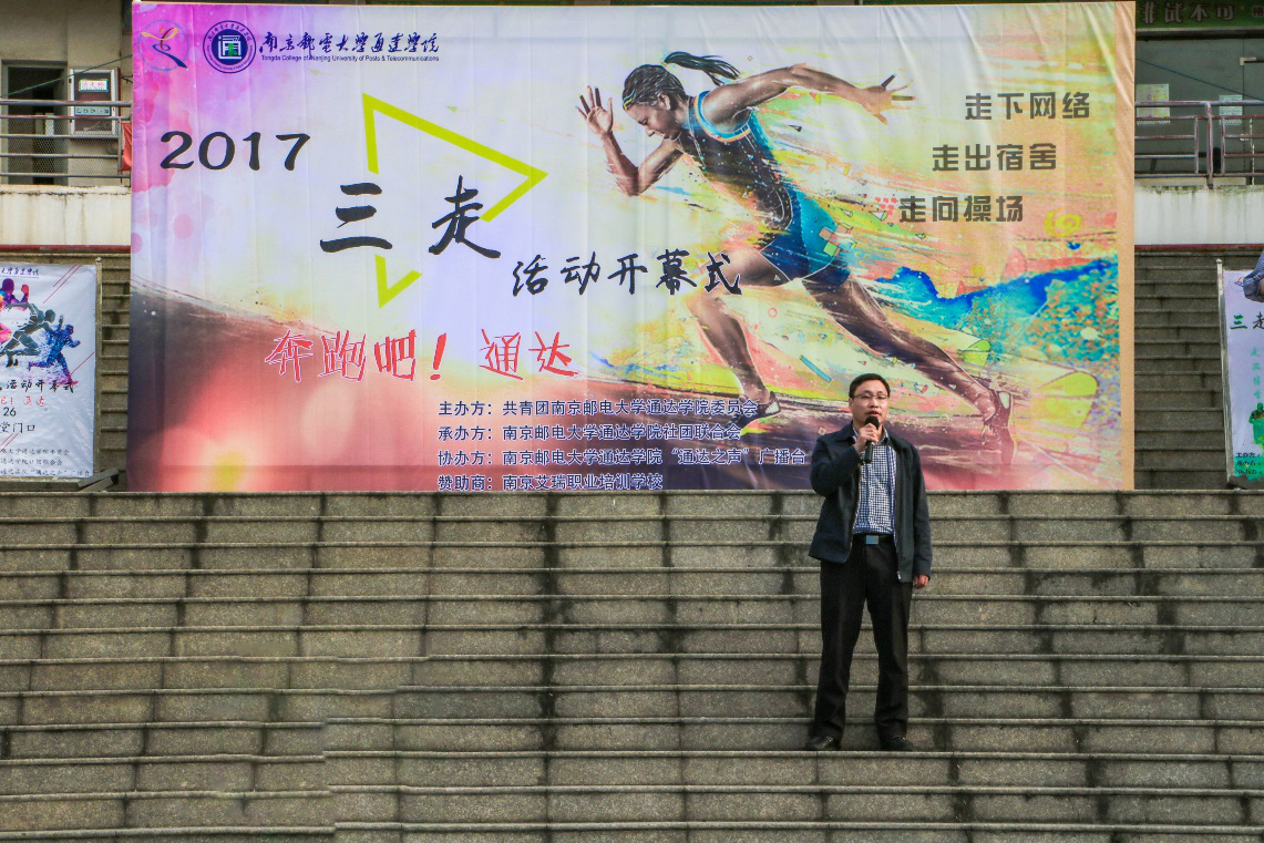 学生代表方正浩宣读了“三走”活动倡议书。团委书记解厚荣宣布2017年“走下网络,走出宿舍,走向操场”群众性体育锻炼活动开幕。