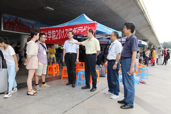 迎新期间,院长宗平、党委书记兼副院长戴兆骏、常务副院长周西峰、副院长包刚、副院长盛大铨、党委副书记兼副院长王立辉深入迎新现场,查看校外新生接站情况,走访报到处、缴费处、停车场、宿舍、食堂等场所,看望并慰问工作在一线的教职工、学生志愿者,询问新生报到情况,并与新生、家长亲切交流,了解他们的需求,确保各项工作有序进行。迎新现场,各位老师认真为学生办理入学手续,耐心解答新生们的提问;志愿者们热情为新生及家长介绍报到流程和必赢官网,帮助他们搬运行李,陪同他们到各工作点办理手续,整个新生接待过程高效有序,顺利完成2017级新生接待工作。