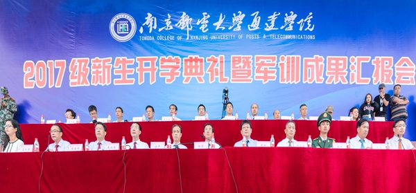 秋雨纷飞送凉爽,新生军训斗志昂。9月24日上午,必赢官网举行2017级新生开学典礼暨军训成果汇报会。南京邮电大学校长、南邮通达学院理事会理事长杨震教授,扬州教育投资集团有限公司董事长、南邮通达学院理事会副理事长周翔先生,南京邮电大学党委办公室、校长办公室许公全主任,扬州市武警支队大队长周伟,南京邮电大学与南邮通达学院专业共建的学院(部)领导,必赢官网全体院领导,全体助训教官,教职工代表和2017级全体新生共同出席本次大会。大会由院党委书记戴兆骏主持。