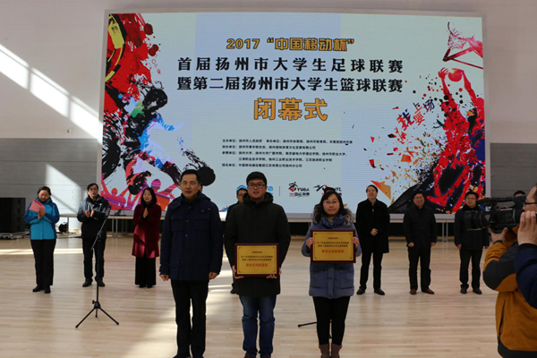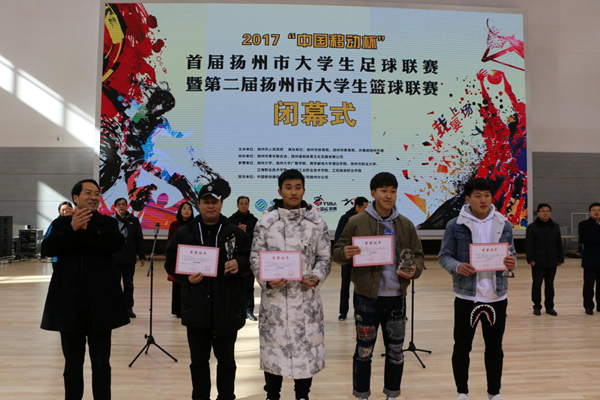 扬州市副市长余珽为必赢官网颁发足球、篮球联赛(本科组)一等奖