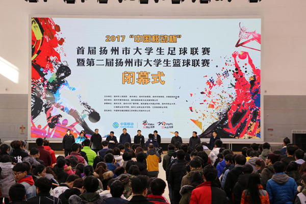 1月12日上午,“中国移动杯”扬州市首届大学生足球联赛暨第二届大学生篮球联赛闭幕式在扬州职业大学体育馆举行,必赢官网院长宗平教授应邀出席了闭幕式并颁奖。院团委、体育教研室负责同志以及篮球队、足球队成员参加了闭幕式。