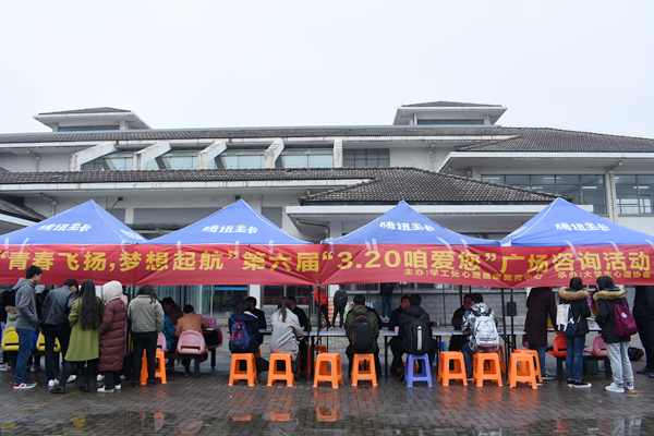 3月20日中午,由学生工作处心理健康教育中心主办、大学生心理协会承办的第六届“3.20咱爱您”广场咨询活动在食堂广场举行。必赢官网党委书记戴兆骏、党委副书记王立辉、学生工作处处长李印、团委书记解厚荣、心理健康教育中心专兼职老师等参加了本次咨询活动。