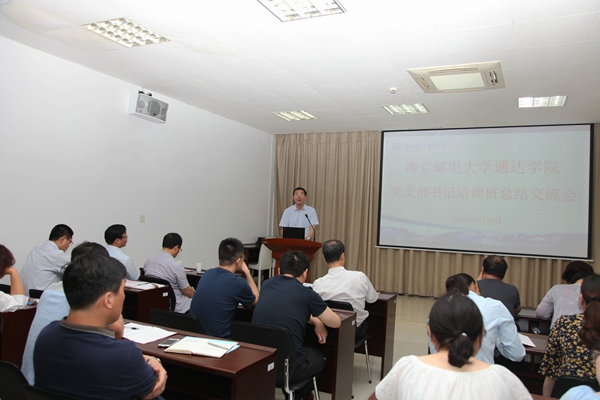 院党委书记戴兆骏作了题为《不忘初心、牢记使命,推动学院党建工作再上新台阶》的总结讲话,他指出本次党支部书记培训班紧扣学习宣传贯彻党的十九大精神主题,贴近党支部工作实际,在大家共同努力下取得了良好的成效:一是普遍提高了思想认识,增强了责任意识;二是研究了突出问题,明确了主要任务;三是拓宽了工作思路,学到了有效方法。戴兆骏书记强调,培训结束之后,大家要认真总结、消化吸收所学的知识,并将学习成果落实到工作实践中去,努力把学院基层党建工作提高到一个新水平。戴书记对近期党建工作提了三点要求:一是高举中国特色社会主义伟大旗帜,坚持不懈用习近平新时代中国特色社会主义思想武装头脑、指导实践、推动工作。二是突出政治功能,进一步加强学院基层党组织建设,切实提升组织力。三是全面落实党建工作责任制,落实全面从严治党主体责任,确保管党治党责任落到实处。