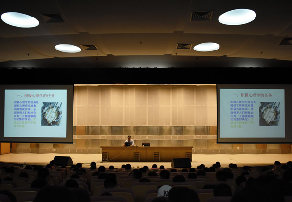 讲座主要围绕“大学生活”、“认识自己、规划自己”、“大学生必须思考的六件事”、“大学生需要调整的四种心态”、“衡量是否适应的标准”“如何结交新朋友”等方面,和大学生们畅谈如何过好大学生活并指导大学生学会充实课余生活,融洽人际关系,合理把握情感等。两个小时的讲座,李教授凭借自身多年丰富的工作经验,结合生动鲜活的案例,从积极心理学的视角对大学生的许多心理现象做出新的解读,并以此来激发大学生自身所具有的某些实际的或潜在的积极品质和积极力量,从而激励大学生都能顺利地走向属于自己的幸福彼岸。