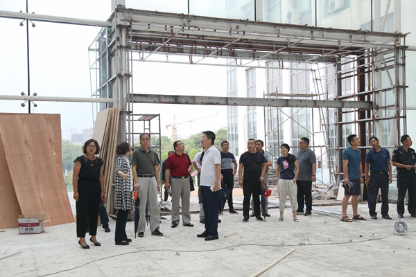 院领导检查图书馆大厅装修工程