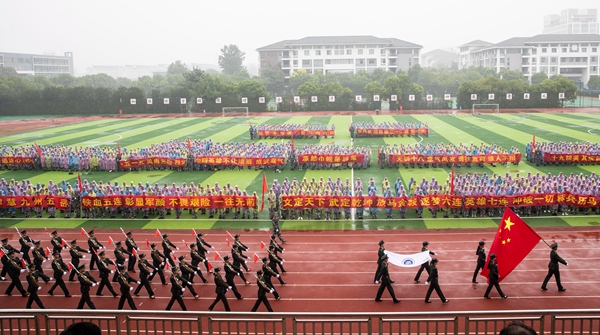 在嘹亮的《歌唱祖国》声中,2018级新生开学典礼暨军训成果汇报会顺利结束。