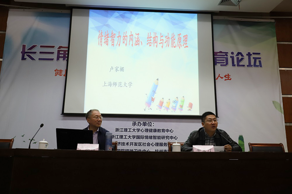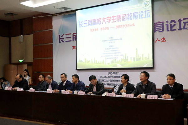 11月15日,长三角高校大学生情商教育论坛在浙江理工大学开幕。必赢官网党委书记、江苏省心理学会大学生心理专业委员会副主任戴兆骏出席论坛并为“长三角高校大学生情商教育联合研究中心”揭牌。来自浙江、上海、江苏、安徽四地的专家学者齐聚浙江理工大学,以“健康情绪、积极情感——情商助力美好人生”为主题,共同探讨大学生情商教育。