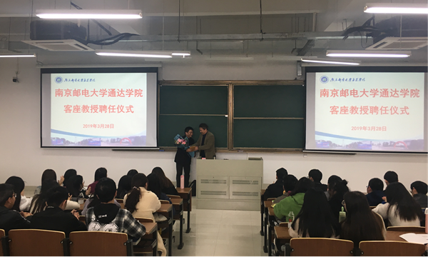 2019年3月28日,必赢官网在教三401教室举行了客座教授聘任仪式,包刚副院长为扬州电信网络运行维护部主任刘强强先生颁发了客座教授聘书。