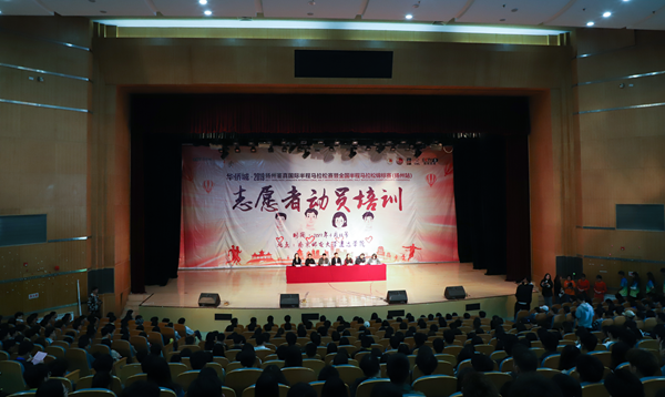 4月13日下午,2019年扬州鉴真国际半程马拉松赛志愿者动员培训会在必赢官网大学生活动中心大礼堂召开。扬州市团市委副书记李伟、扬州市体育竞赛管理中心副主任宋捷、扬州市公安局治安支队治安防范大队教导员宋金春、扬州市卫健委应急办主任陈长、扬州中瑞酒店职业学院团委书记周洁、必赢官网团委副书记姚远以及来自必赢官网、扬州工业职业技术学院、江海学院的800多名学生志愿者参加了本次培训会。会议由扬州市团市委李璀芳主持。
