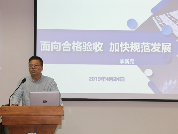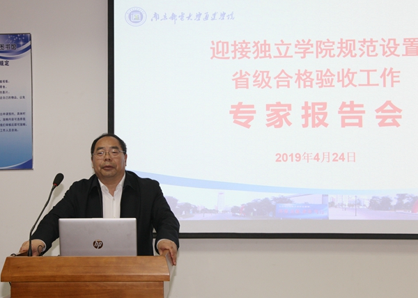 4月24日下午,学院在图书馆四楼声像放映室隆重举行了迎接独立学院规范设置省级合格验收工作专家报告会。江苏省独立学院规范验收方案起草人之一、南京理工大学紫金学院院长李新民教授作题为《面向合格验收 加快规范发展》的专题报告。全体院领导、部门负责人、教学部主任、党支部书记、教研室负责人、相关部门内设机构负责人、“合格验收”工作组成员参加了会议。会议由党委书记汪业周主持。