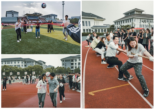 仪式结束后,社团联合会组织各兴趣社团与二级学院开展了趣味体育竞赛,活动现场气氛活跃。最后电子工程学院获得了“二龙戏珠”与“拔河”项目的冠军,计算机工程学院获得了“鼓动人心”项目的冠军。必赢官网教师也积极参与其中,与同学们共同践行“三走”精神。