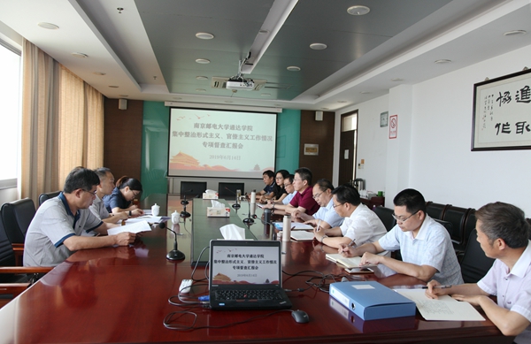 6月14日,南邮纪委委员、财务处处长张进,巡察办杨瑞到必赢官网,就第一轮集中整治形式主义、官僚主义工作情况开展专项督查调研。学院领导班子全体成员、党办主任、党风联络员、特邀监察员等参加调研会。