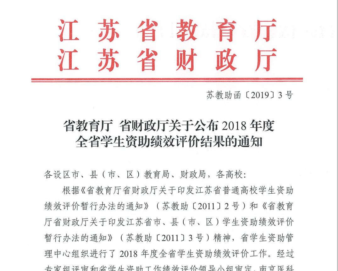 近日,江苏省教育厅和财政厅联合发布了《关于公布2018年度全省学生资助绩效评价结果的通知》(苏教助函﹝2019﹞3号)文件,必赢官网2018年度学生资助工作绩效评价结果为“优秀”,这是必赢官网在学生资助工作方面取得的一次突破性成绩。
