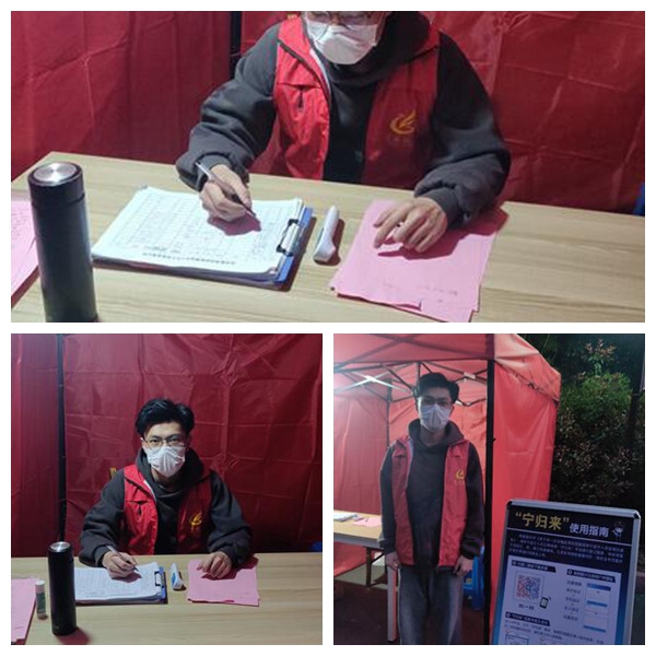2017级通信工程专业预备党员徐陈颖同学,得知可以参加防疫志愿活动时,第一时间在家乡南通市报名参加了志愿者活动。参加家乡志愿服务队后,跟随村干部挨家挨户调查返现村民情况,卡点值班,登记村民体温,给进出车辆消毒,宣传防疫知识,督查防疫工作落实等每一项工作都耐心细致的完成。徐陈颖说:“许多党员在团圆饭桌上与家人告别,转身奔赴抗疫一线。而我作为一名预备党员,能为家乡疫情防控贡献力量,我感到无比自豪。通过这些天的志愿者工作,让我更加懂得了什么是奉献精神,看到村里的工作人员和每一位志愿者都在岗位上尽心尽责的坚持,我更加坚定要做好一名志愿者的信心与决心!希望在大家的共同努力下,共同打赢共同打赢这场疫情防控阻击战。”