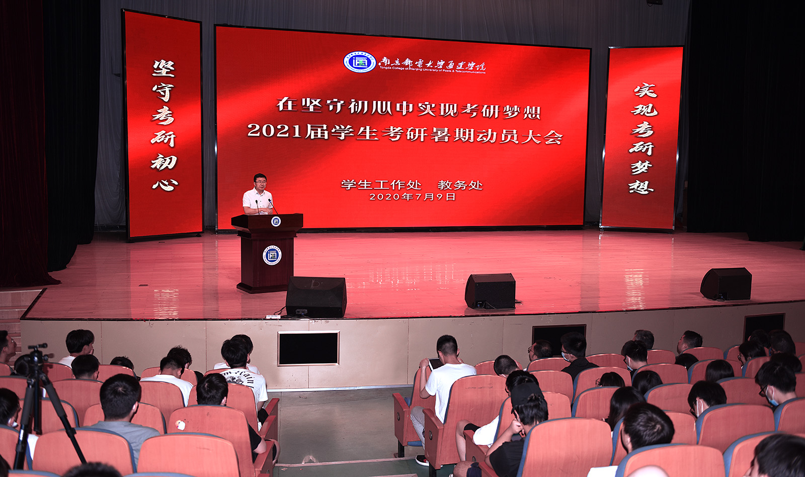 7月9日下午,必赢官网2021届学生考研暑期动员大会在大学生活动中心礼堂举行。常务副院长赵洪牛,副院长刘允,副书记兼副院长王楷,教务处、学工处负责人,2017级全体辅导员及近800名2017级考研学生参加了本次动员大会。大会由学生工作处副处长解厚荣主持。