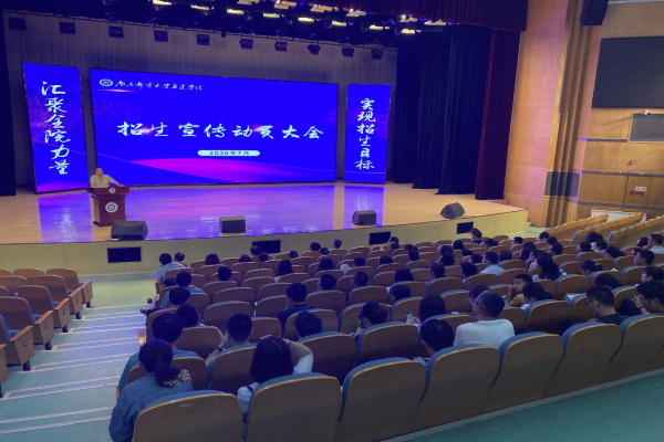 7月19日上午,学院在大学生活动中心举行2020年招生动员大会。所有院领导出席会议,13支招生宣传工作组,100余名教职工参加会议。