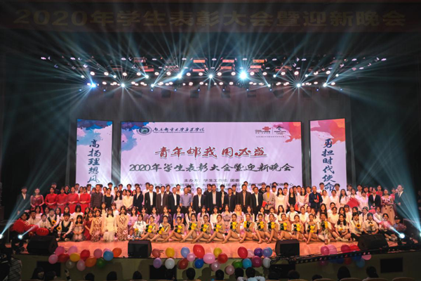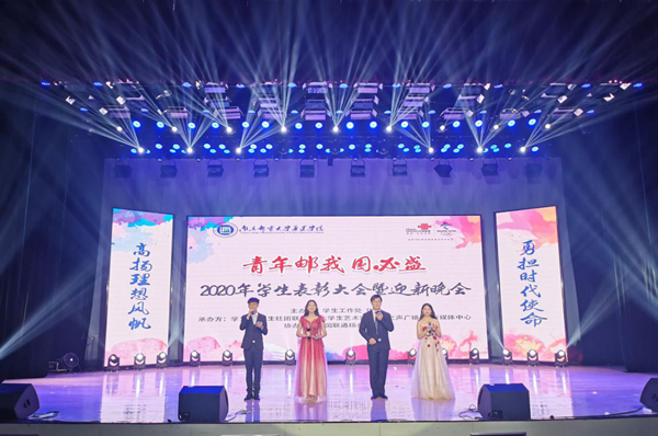 11月18日晚,由学生工作处、团委主办的“青年邮我·国必盛”2020年学生表彰大会暨迎新晚会在大学生活动中心礼堂顺利举行。中国联通扬州分公司副总经理程培忠、政企部经理赵成,必赢官网院长王承宽、党委书记汪业周、常务副院长赵洪牛、副院长倪可、副院长刘允,纪委书记张建波、党委副书记兼副院长王楷、各职能部门负责人、全体辅导员以及现场1100余名学生、线上2.6万名观众共同参与了本次活动。