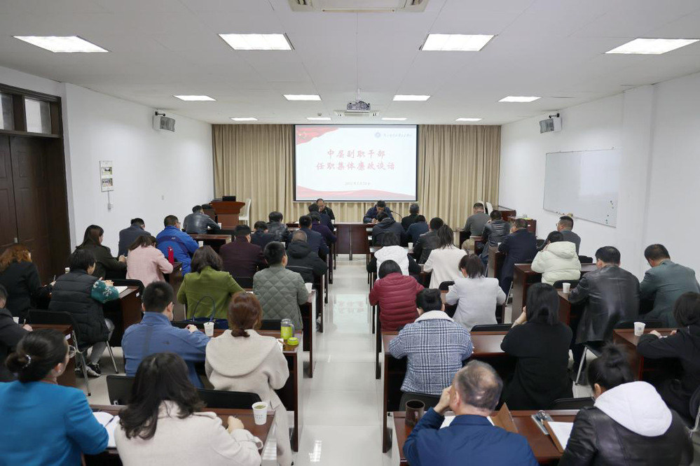 院长王承宽从基础建设、内涵建设、队伍建设三个方面简要回顾了近两年学院事业发展的新成绩、新进展,代表学院向履新的中层副职干部表示祝贺。他代表学院向全体干部提出了要“提高五种能力”的要求:一是提高政治能力。要把旗帜鲜明讲政治摆在首位,把好政治方向、站稳政治立场;要自觉学习理解、对标对表党的路线方针政策,向以德为先的“风向标”看齐。二是提高领导能力。要提升专业素养,用好领导艺术,常“充电”,善“掌舵”,敢“亮剑”。三是提高执行能力。要决策不越位,当好部门正职的参谋和助手;要落实不缺位,模范执行部门正职决策;要干好分内事,管好自己的责任田,把分管工作抓出成效。四是提高协调能力。要有山容万物、海纳百川的胸怀;要有学人之长、补己之短的态度;要有广开言路、择善而从的作风。五是提高拒腐能力。要正视权力,管好权力,慎用权力,常修为政之德,常思贪欲之害,常怀律己之心。