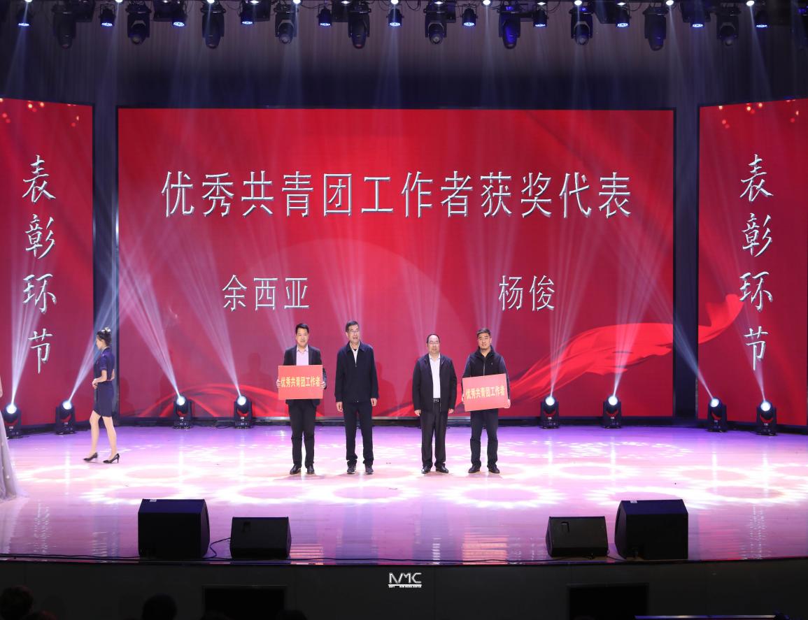 王承宽院长和汪业周书记为优秀共青团工作者颁奖