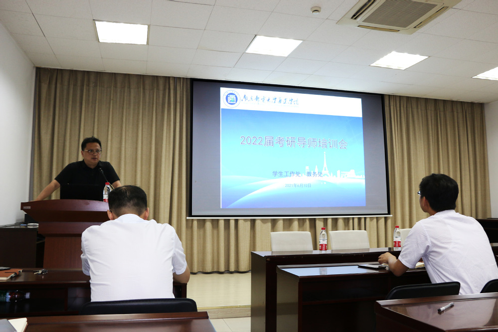 会上,教务处处长王志锋首先介绍了学院考研导师的相关政策,解读了考研导师的选拔条件、工作职责,明确了相关工作要求。随后,由往届考研导师唐军和苗东林分别分享了自己的指导学生经验。唐军老师重点介绍了考研目标院校的选择、专业定位,以及如何分配好时间做好考研准备等。苗东林老师则从“考研是什么”“为什么考研”及“怎么考研”作了分享。