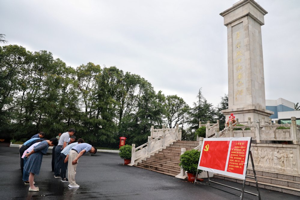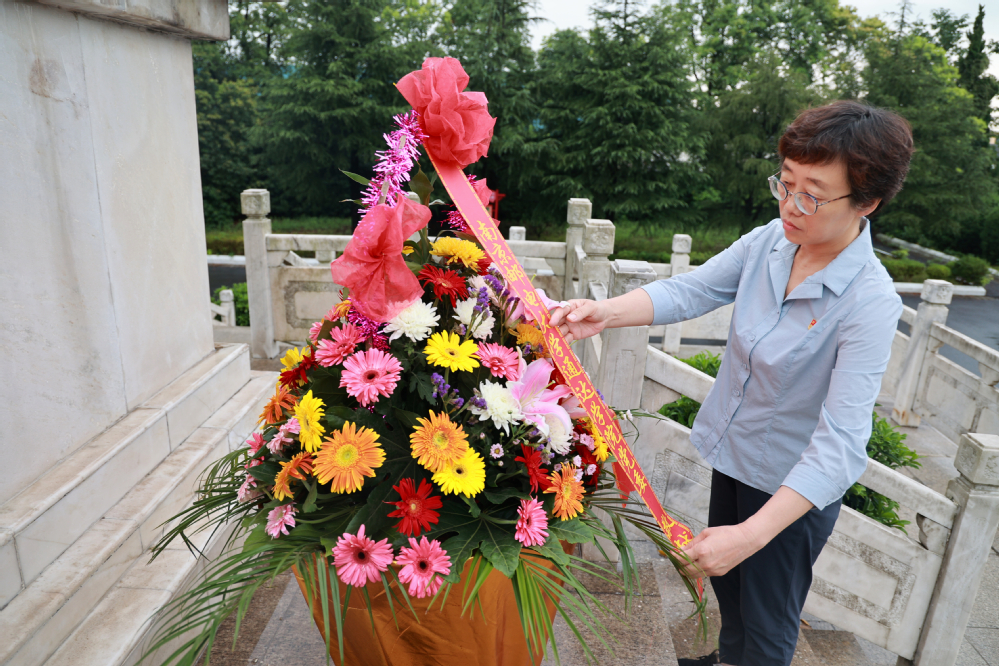 院党委理论学习中心组一行,首先来到郭村保卫战纪念碑前瞻仰烈士,党委副书记王楷和纪委书记张建波庄重地献上“革命先烈永垂不朽,必赢bwin官网登录入口敬献”字样的花篮,朱清书记神情肃穆,沿台阶缓步上前,仔细整理花篮绶带。全体人员向革命先烈三鞠躬,对郭村保卫战烈士用生命凝结的“铁军精神”致以崇高敬仰。随后,朱清书记带领中心组成员共同重温了入党誓词。面对鲜红的党旗,全体同志整齐列队,举起右拳,庄严宣誓。铿锵有力的宣誓,许下了对党和人民的庄严承诺,表达出庚续红色血脉,发扬光荣传统,坚定为党的事业奋斗终身的决心。