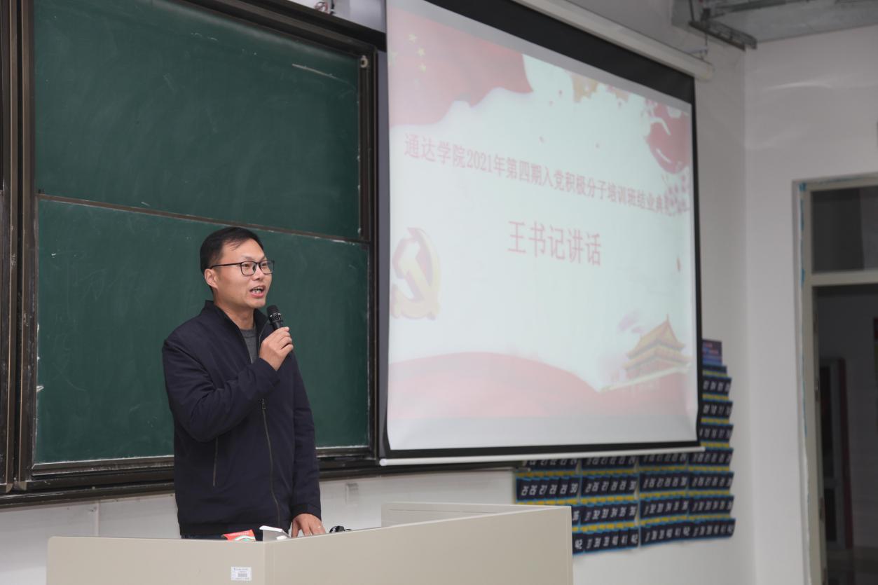 随后,王书记作了总结讲话。他对顺利结业的123位学员表示衷心的祝贺。同时,他提出三点希望:一要坚定理想信念,加强政治理论学习,从而进一步端正入党动机,做到思想上入党;二要练就过硬本领,提升综合素质,不断加强、更新自我认知,做到知行合一;三要发挥模范作用,接受组织考验,自觉承担历史使命,正确对待党组织对自己的考察。