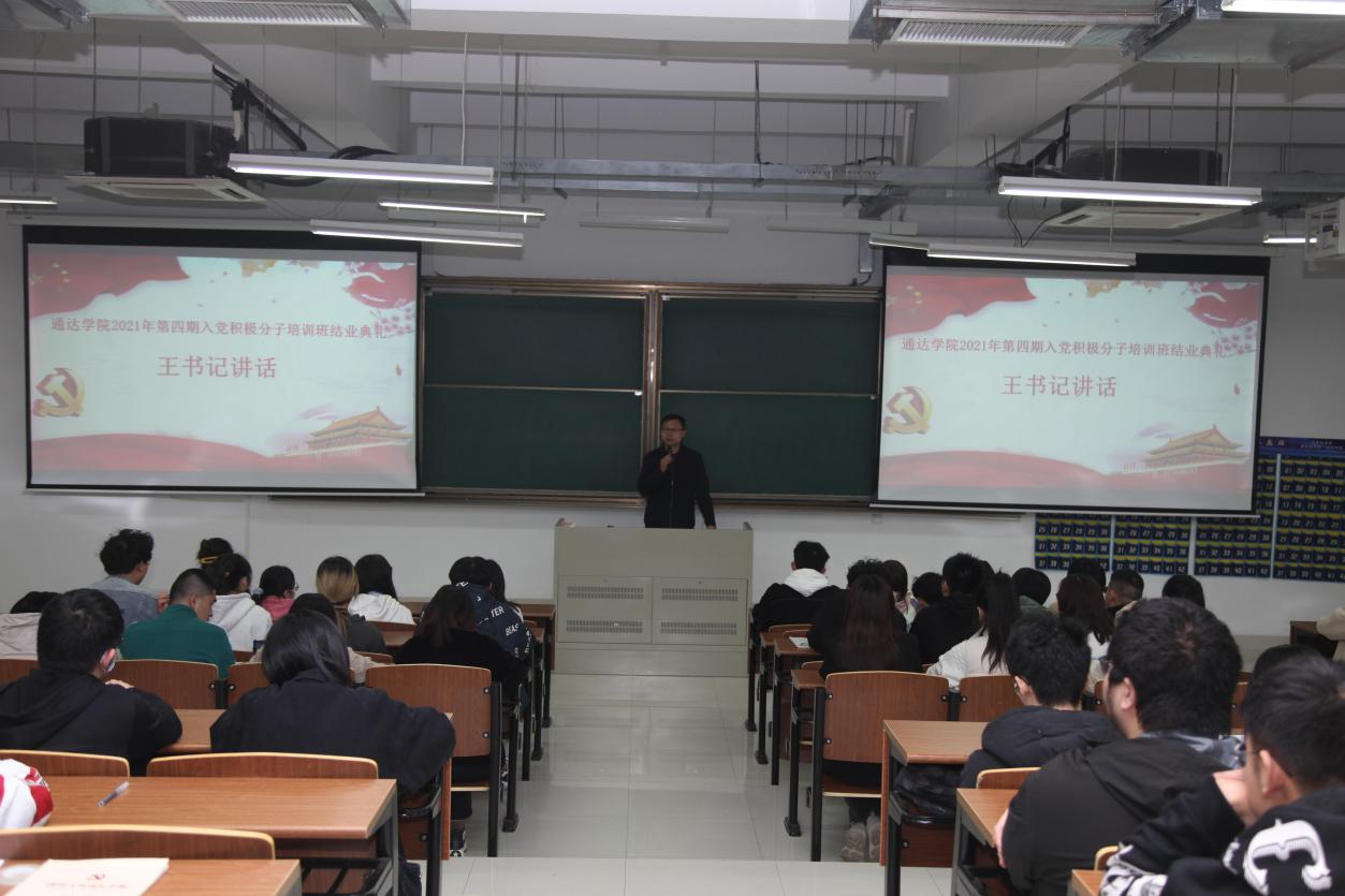 11月17日晚,必赢官网2021年第四期积极分子培训班结业典礼在扬教3401教室举行。学院党委副书记兼副院长王楷、党委工作部副部长任建蕊及196名党校学员参加结业典礼。结业典礼由培训班班主任张晓主持。