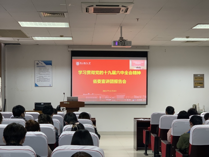 根据省委统一部署和校党委宣传部《关于在线收看学习贯彻党的十九届六中全会精神省委宣讲团报告会的通知》要求,12月8日下午,学院党委理论学习中心组及党员代表在学院图书馆四楼声像放映室,收看了省委宣讲团成员、江苏省社会科学院党委委员、副院长李扬作学习贯彻党的十九届六中全会精神省委宣讲团报告会的直播。各党支部组织党员同步在线收看。