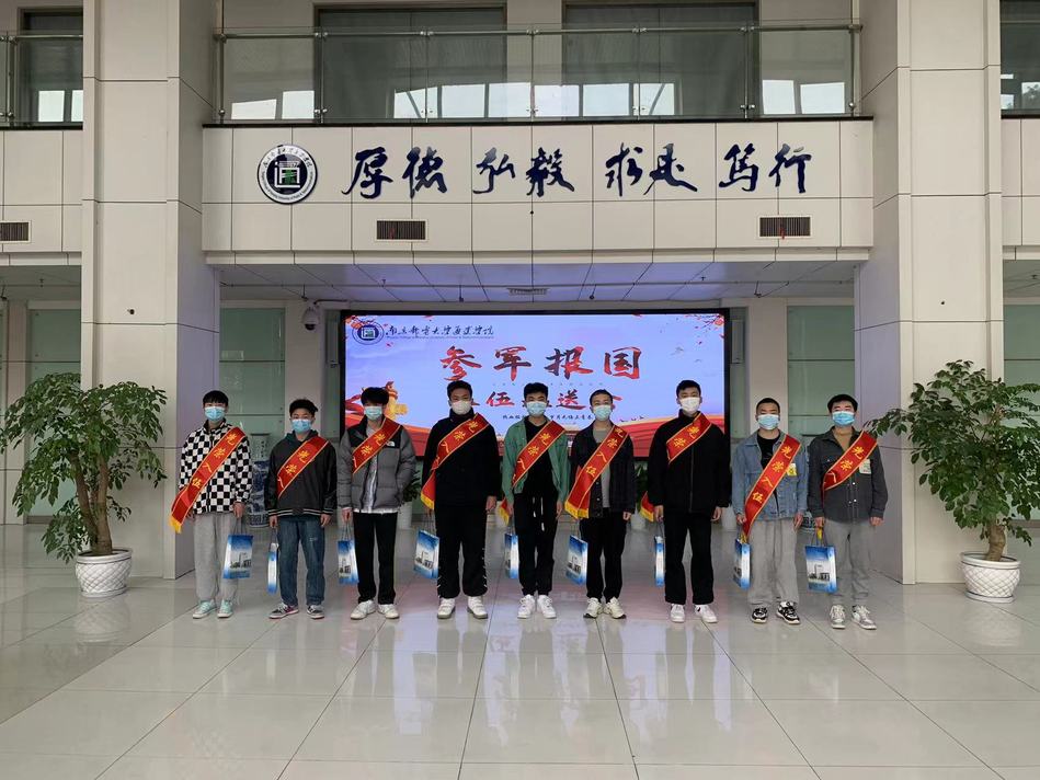 据悉,今年春季征兵工作开启以来,在学院领导的高度重视下,人武部进行了广泛深入的宣传动员,共有42名学生积极响应国家号召,报名应征入伍。经严格的体检、政审环节,最终11名学生顺利入选。