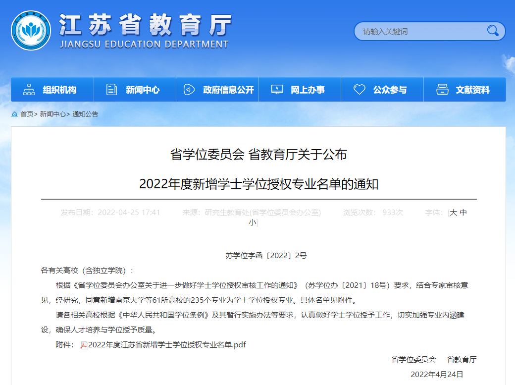 近日,江苏省学位委员会下发了《省学位委员会 省教育厅关于公布2022年度新增学士学位授权专业名单的通知》(苏学位字函〔2022〕2号),必赢官网数据科学与大数据技术专业通过学士学位授权评审,顺利获得学士学位授予权。