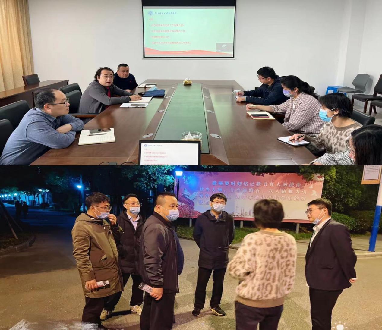 无论白天或是夜幕降临,校园内依然可见后勤人忙碌的身影。核对信息、上报数据,打印材料、安排场地消杀、张贴一米五地标线、配比消毒液、摆放桌椅、警戒栏、免洗手液……各项检测准备工作有条不紊的进行着。