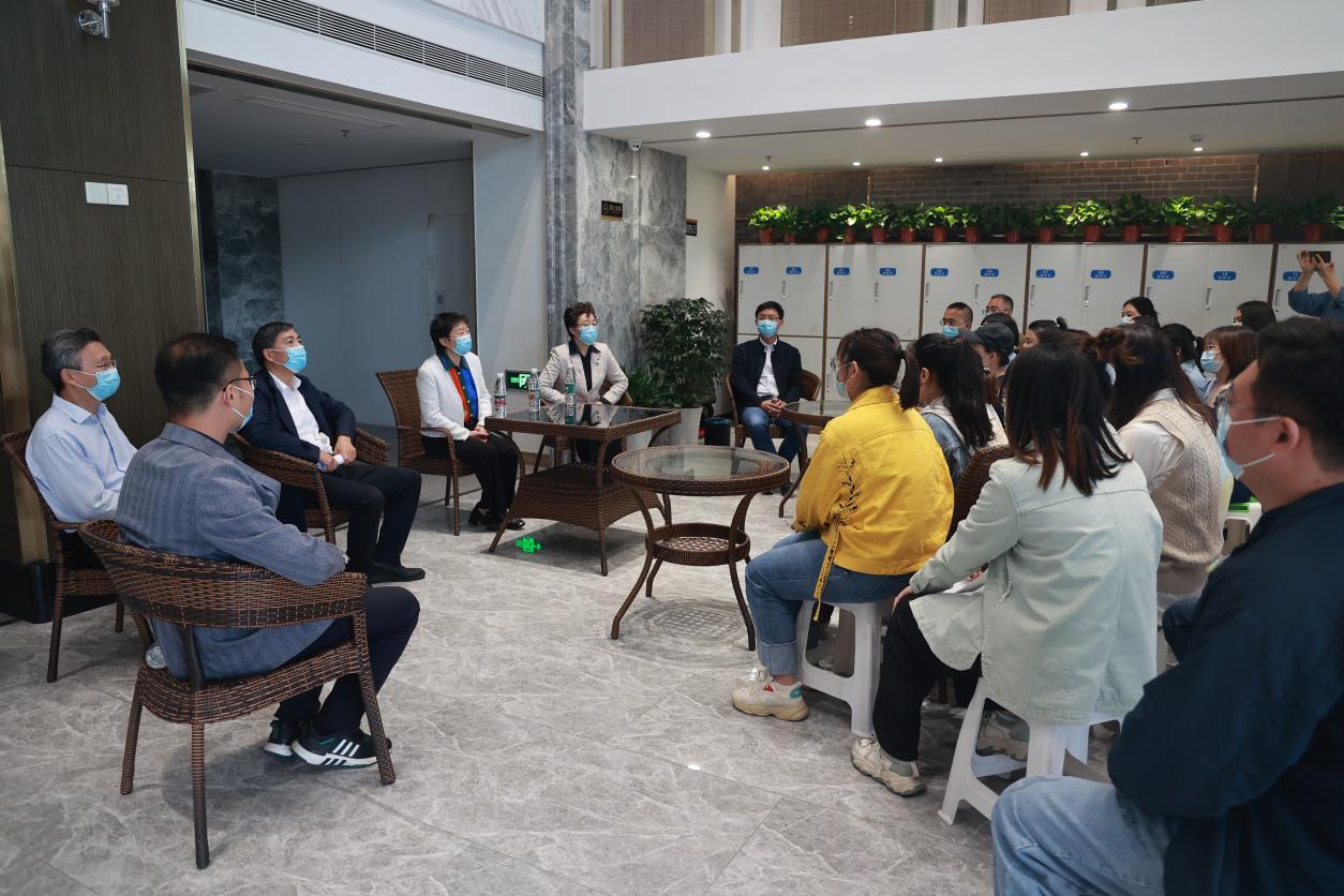 在学术交流中心,叶校长看望值守一线的学工干部和辅导员代表并和大家亲切交谈。她指出,当前校园还处于封闭管理状态,工作在学工线的老师要主动贴近学生、关心关爱学生,畅通意见诉求反馈渠道,及时解决学生的急难愁盼问题,确保学生安心学习、舒适生活。