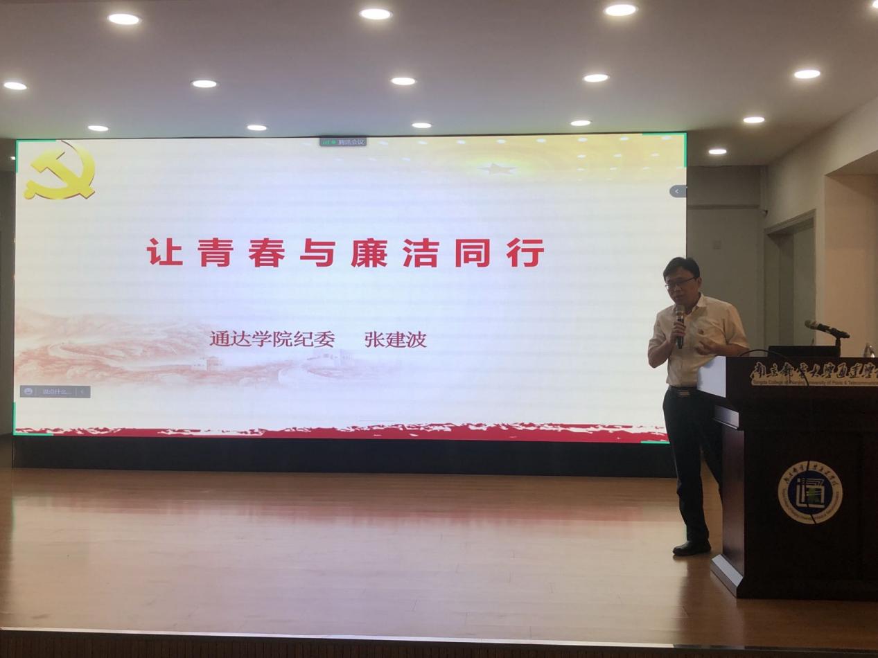 计算机科学与技术专业刘雨欣、信息工程专业郭文鹏作为毕业生党员代表发言。刘雨欣主要对大学期间参加过的廉洁教育活动作了简要回顾,郭文鹏重点谈到了作为学生党员志愿者参加学院疫情防控督查的经历。他们表示,步入职场后将守牢底线、不碰红线、不越界线,坚决做到明纪法、知敬畏、守规矩,争做廉洁自律、勤勉工作的人。随后,纪委办公室主任卞文献、党委工作部副部长任建蕊向毕业生党员代表赠送廉洁教育读本。