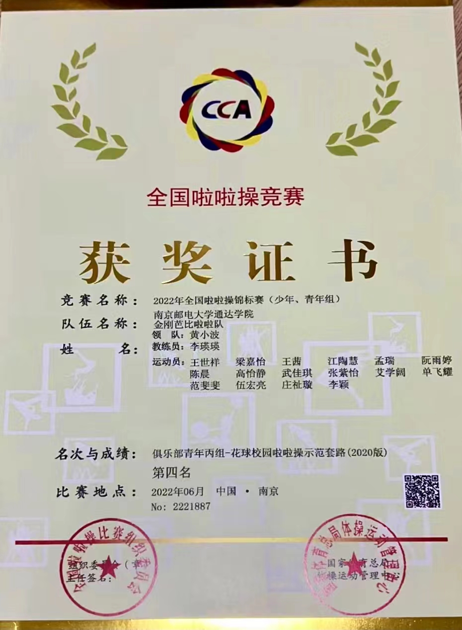 在刚刚结束的 2022 年全国啦啦操锦标赛上,必赢官网啦啦操队获得俱乐部⻘年 丙组-⼩集体组花球⾃选动作第⼀名;俱乐部⻘年丙组-花球校园啦啦操示范套路 (2020 版)第四名的好成绩。