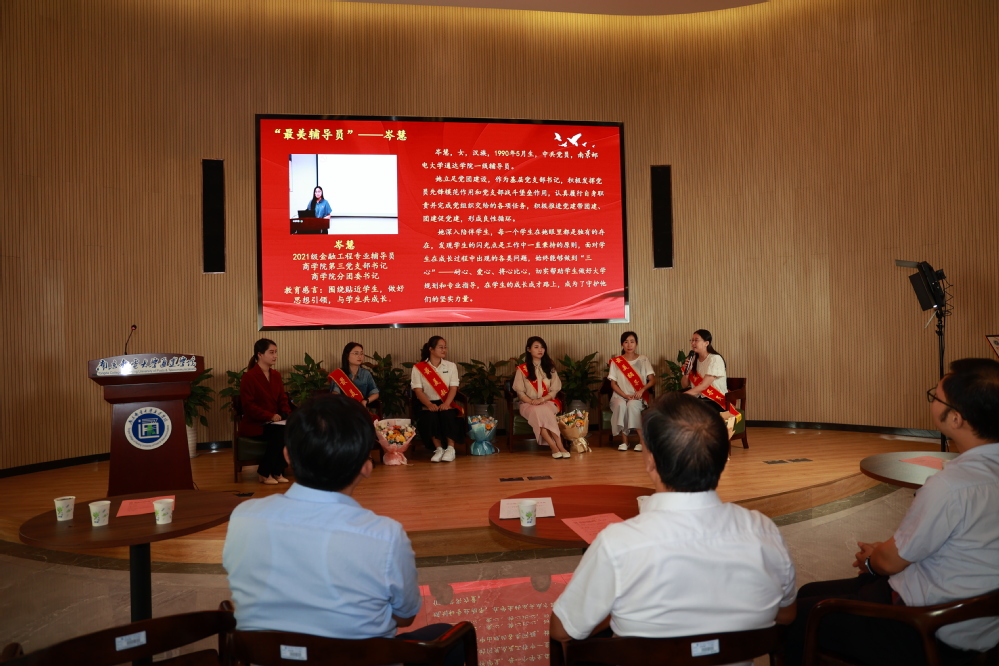 5位获得表彰的老师在现场接受访谈,在访谈中围绕“参加江苏高校辅导员素质能力大赛南师大基地复赛心得,如何平衡啦啦操健美操赛事、教学与学生工作,如何带出江苏省先进班集体,指导学生学科竞赛的心路历程,如何做到科研与教学相长”等话题,现场互动、热烈讨论,展示了她们精耕细作教育事业、春风化雨立德树人的动人事迹。正如她们所说,她们就是以培养和服务学生为己任,用心陪伴学生奔跑于青春赛道。