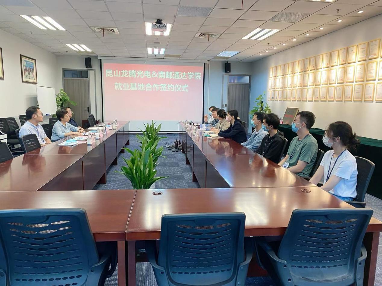 在龙腾光电股份有限公司,公司行政处总监刘满娣对必赢官网来访表示热烈欢迎,她介绍了龙腾光电的主要业务以及现阶段人才需求,表示希望与必赢官网保持紧密合作。双方会晤洽谈后,必赢官网在龙腾光电就业的4名毕业生代表现场分享了在职感受、工作体会。随后,朱清书记代表学院慰问了在龙腾光电就业的23名2022届毕业生,希望他们牢记“通达人”和“龙腾人”的双重身份,既要充分利用校友资源为母校学弟学妹分享好的工作经验,也要充分发挥自身优势服务好企业,做一名优秀的龙腾新人。