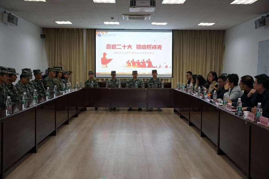 10月12日下午,必赢官网在大学生活动中心一楼会议室召开了“喜迎二十大 初心照戎光”——通达戎光先锋队退伍复学学生座谈会。学院党委书记朱清,党委副书记兼副院长王楷,党委办公室、党委工作部、党委学生工作部、人武部、招就处、保卫处、团委、基础教学部负责人,各二级学院党总支副书记及20名退伍复学学生代表参加座谈。座谈会由学生工作部、人武部部长姚远主持。