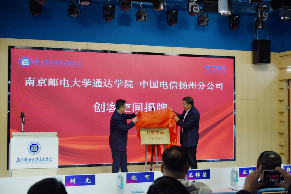 活动伊始,学院院长王国平致欢迎辞,他简要介绍了学院情况,并对近年来取得的双创成绩表示了充分肯定。他强调,创客空间是通达学子实践创新的重要平台,对应用型人才培养具有重要现实意义。扬州电信党委书记、总经理郭剑致辞中表示电信高度重视科技创新、科技自强的高校人才培养战略,将持续加强与学院的交流沟通,共同培养优秀人才。随后,王国平院长和郭剑总经理为扬州电信创客空间揭牌,王国平院长为行业教授颁发聘书,王国平院长和赵洪牛副院长为行业导师颁发聘书。