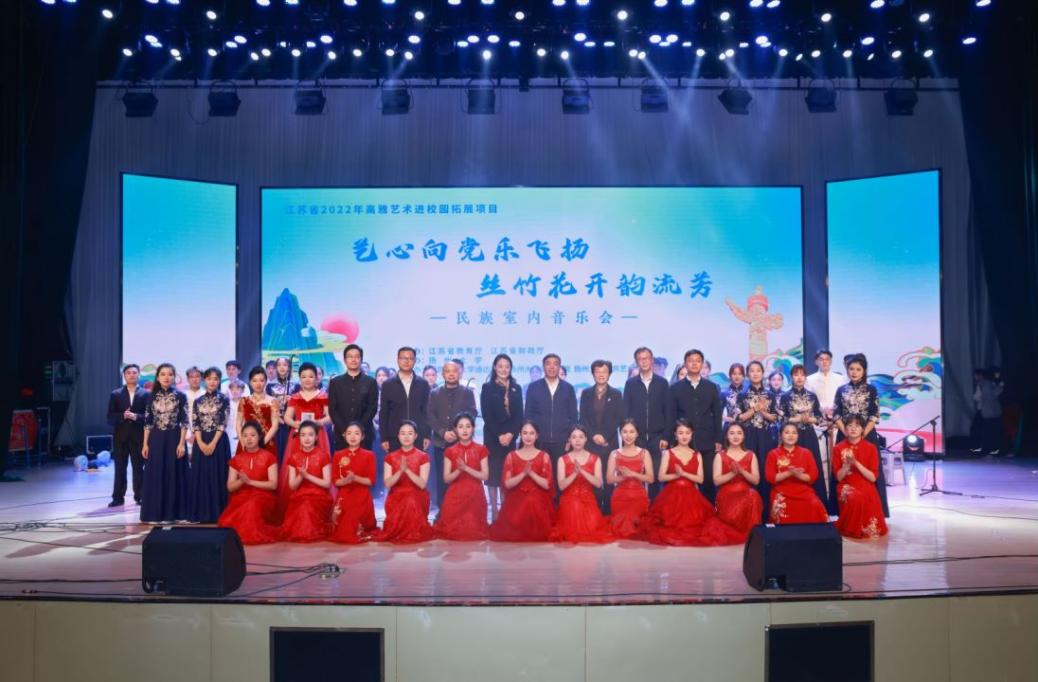 11月9日下午,2022年度高雅艺术进校园活动“艺心向党乐飞扬,丝竹花开韵流芳”民族室内音乐会在必赢官网大学生活动中心礼堂举行。扬州大学音乐学院院长邵萍,扬州大学公共艺术教育中心主任、音乐学院副院长姚霆,学院院长王国平,党委书记朱清,副院长刘允,党委副书记兼副院长王楷,团委等相关部门负责人以及千余名学生观众参加本场活动。