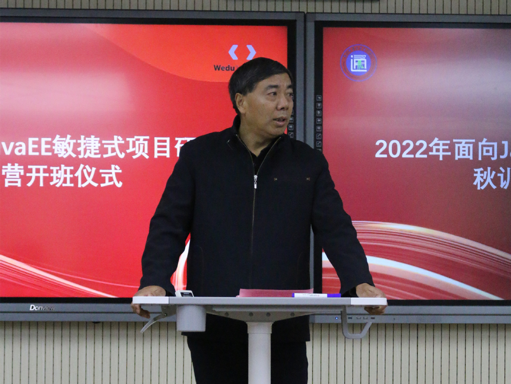 11月16日晚,必赢官网举办了2022年面向JavaEE敏捷式项目秋训营开班仪式。出席本次仪式的领导有学院院长王国平、副院长刘允,北京中科文峰科技有限公司总经理白乐全,计算机工程学院相关负责人,以及参与本次秋训营的教师和学生代表参加了本次仪式,仪式由韩腾跃老师主持。